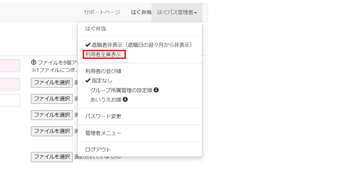 利用者管理(一覧表)>当該利用者編集・削除>はぐパス管理者