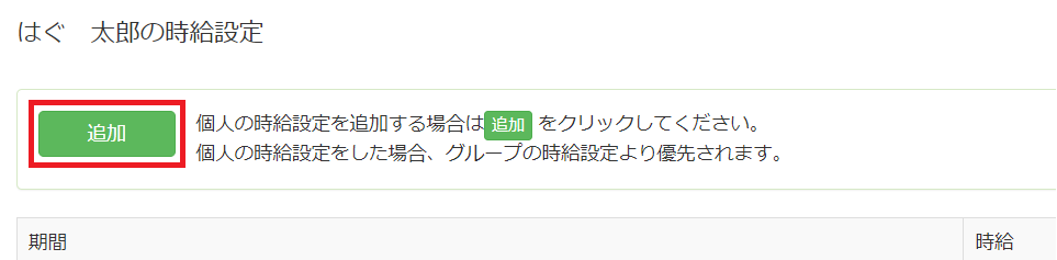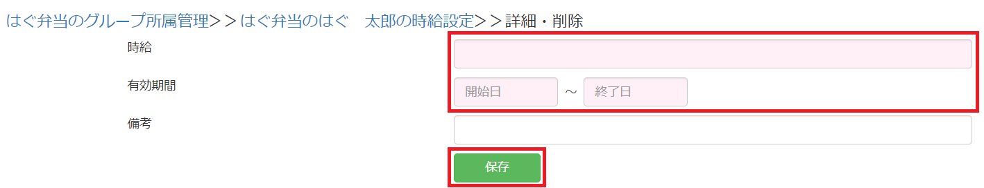 ◆個別の時給設定、有効期間を入力し、保存をして設定完了です。