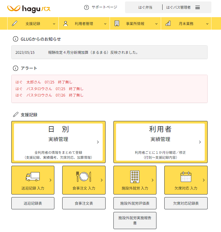 ・はぐパス管理者は、全ての機能にアクセスができ、利用ができます。