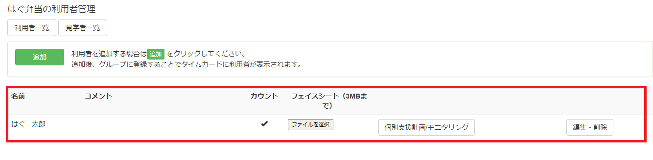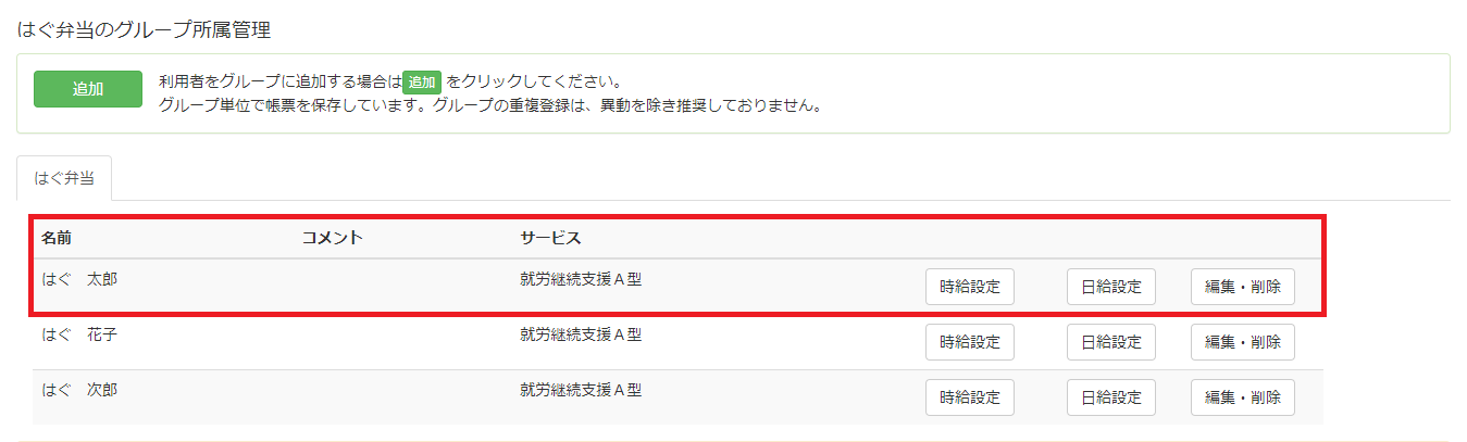 【試用開始の事業所様向け】 グループ情報に、最初からテスト利用者が居るのですが・・・削除して良いですか? 2023年04月28日 04:44 更新 はい。削除して問題ありません。グループ情報に、テスト利用者が入った状態からスタートします。(使い方に慣れましたら)テスト利用者の削除をお願いします。実際の利用者登録後の初期設定の仕方は、こちらより確認ください。 以下は、試用開始時のデフォルト設定状態についての説明です。 ・利用者管理(※テスト 太郎が自動生成される利用者データです。) ・グループ情報(※事業所名のグループが自動生成されます。)名称が問題なければ、そのままご利用ください。 ・グループ所属管理 コメント 0件のコメント サインインしてコメントを残してください。
