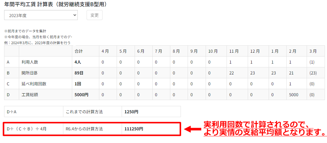 ※2023年度までの平均工賃の旧計算方法と、2024年(令和6年度)からの新計算方法 両方を表示しています。